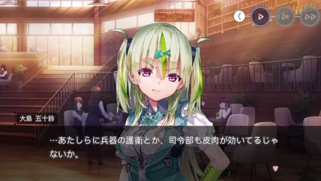この毅然(きぜん)とした口調が五十鈴らしさだと勝手に思っていたのだけど、実際は常に沈思黙考していることを知って複雑な気持ちになってきている自分がいます。