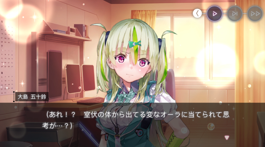 少し空気を入れ替えようと、窓を開ける五十鈴。するとカフェテリアの方向から歓声が聞こえてきます。