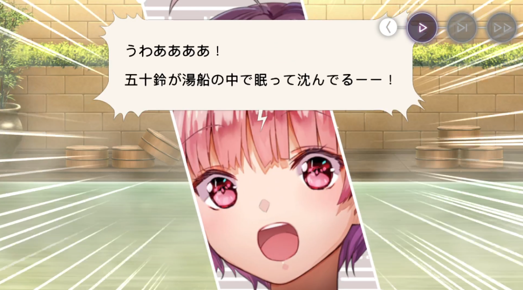気が緩み過ぎたのか、湯船の中で眠ってしまった五十鈴を急いで引き上げます。ギリギリ助かった五十鈴に、六宇亜が自分も息苦しい思いをしてみようかなと言い出すのであった。