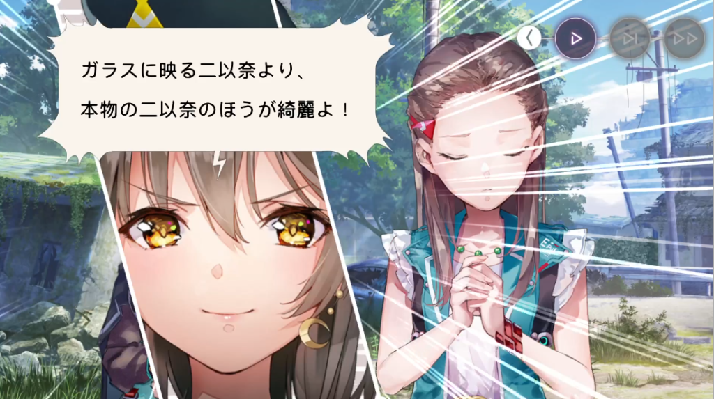 二以奈は自分の美貌に惹きつけられていると、自信満々。